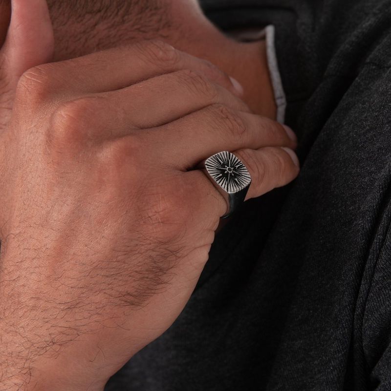 This signet ring with the North Star is a jewel with a stunning representation of the brightest star in the night sky. It symbolizes stability, guidance, and hope in times of uncertainty. The ring captures the glow of the North Star in a delicate and sophisticated design, making it an inspiring choice for those who wish to always remember to follow their own path.