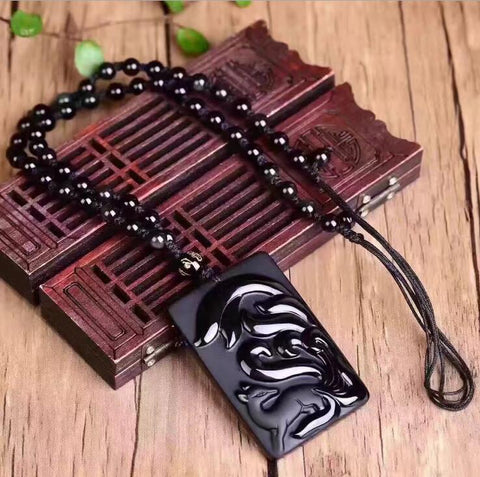 This is the perfect necklace for you! A necklace made from natural obsidian, ideal for all kitsune fox fans!