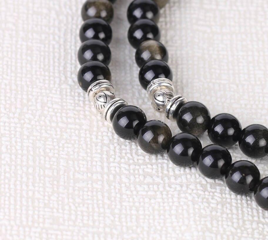 Magnificent Obsidian Mala Bracelet with 108 beads, possessing a strong protective power.
