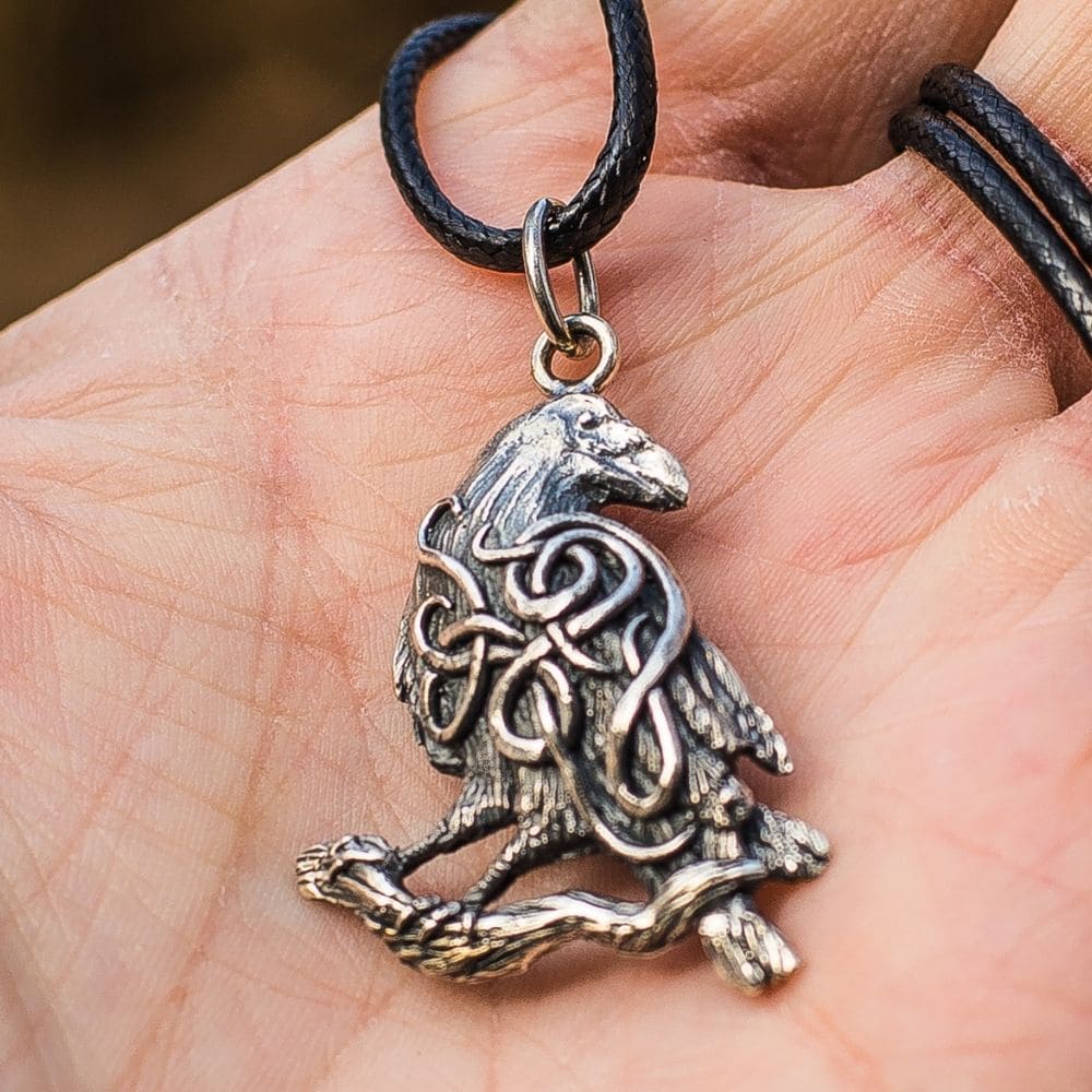 The raven was one of the most important symbols in Viking culture. It represented the god Odin, the most powerful of the Norse gods. This necklace in silver features a magnificent raven perched on a branch of the Yggdrasil tree.