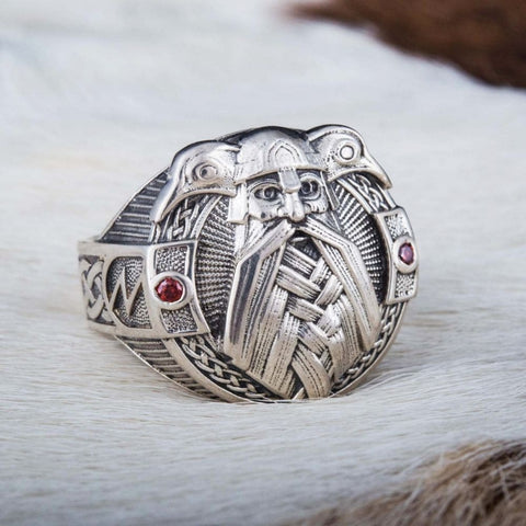 A sterling silver signet ring featuring the image of Odin, the supreme god of the Norse pantheon. Odin was the god of war, wisdom, and poetry. The Scandinavians knew him by many names, including Allfather.