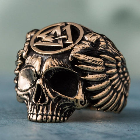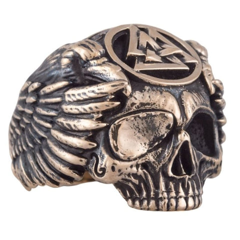 Pay tribute to all these heroes who sit in Valhalla alongside Odin with this magnificent solid bronze ring representing Odin's skull.