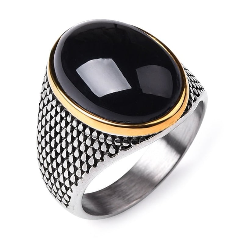 This stainless steel onyx ring has all the features to add a subtle touch of mystery and sophistication to your style. This iconic piece of jewellery captures attention whenever it is worn.