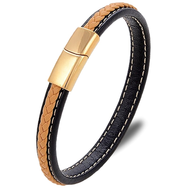 Choose the stylish combination of orange and black to enhance your masculine look. Our orange and black men's leather bracelet slides easily onto your wrist thanks to the user-friendly stainless steel clasp. This leather bracelet in orange and black colours is ideal for daily wear due to its sleek design, and it has all the necessary qualities to highlight the wearer's look. Orange and black men's leather bracelets are a safe choice in our jewellery collection and have everything to become your favourites.