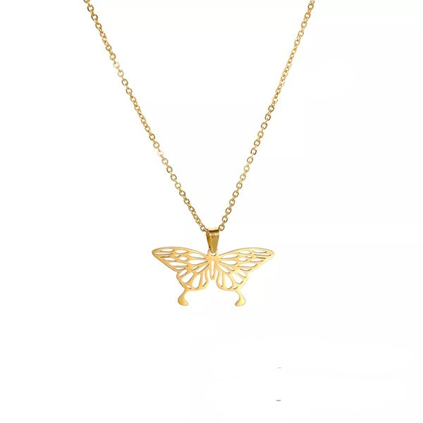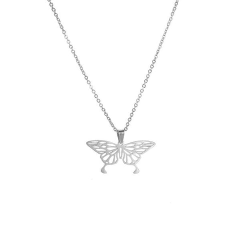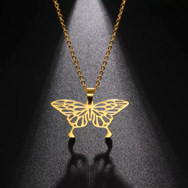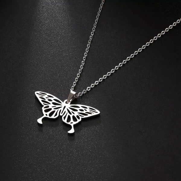 This necklace was designed in an origami style and has a unique shape inspired by the Papilionidae family, belonging to the Lepidoptera order, whose members often display a "tail" on each hind wing.