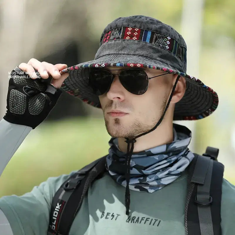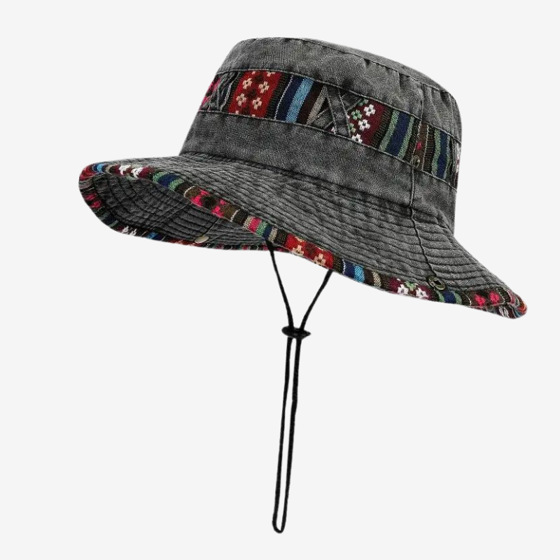 Designed for lovers of unique and rare styles, this original bucket hat provides ideal sun protection and adds a distinctive touch to your look with its ethnic floral pattern. Made from cotton and polyester, this hat ensures comfort and durability, no matter your activity. Whether you're a fishing enthusiast, a hiker, or just out for a city stroll, its various colours - from dark grey to beige - easily adapt to your mood.