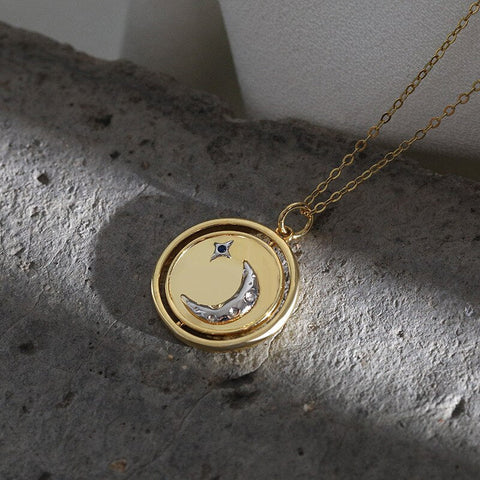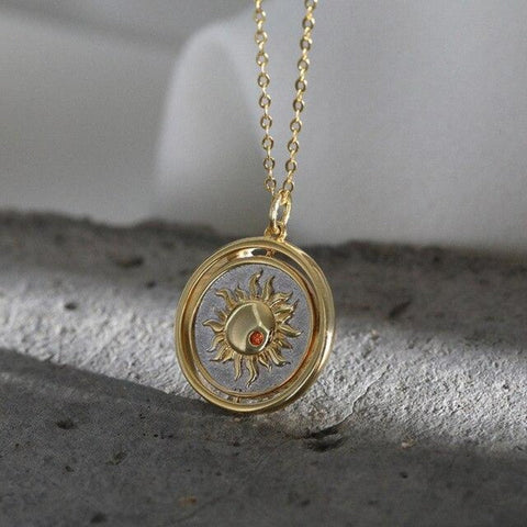 The jewellery display offers you a refined accessory that combines two motifs into one: the sun and the moon around your neck — this original Sun and Moon Necklace design.