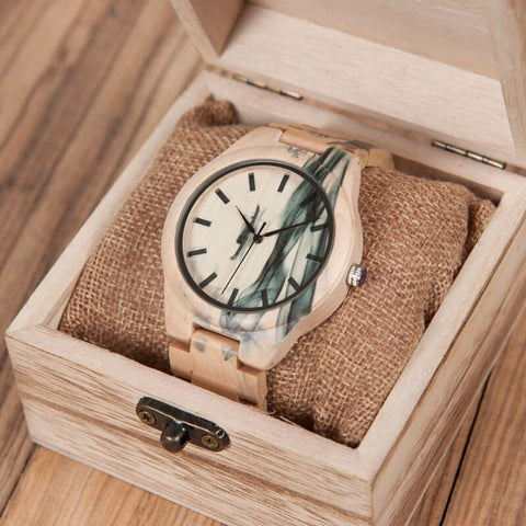 This original wooden watch features a smoke and wood motif. It's a lightweight model, ideal for both men and women! The quartz mechanism is accurate and reliable.