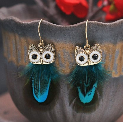 If you're looking for a piece of jewellery as light as a feather, with a bohemian and ethnic touch that invites travel, wear these owl earrings with turquoise feathers. They convey an airy sensation and make you look beautiful at the same time. You won't ever want to take them off.