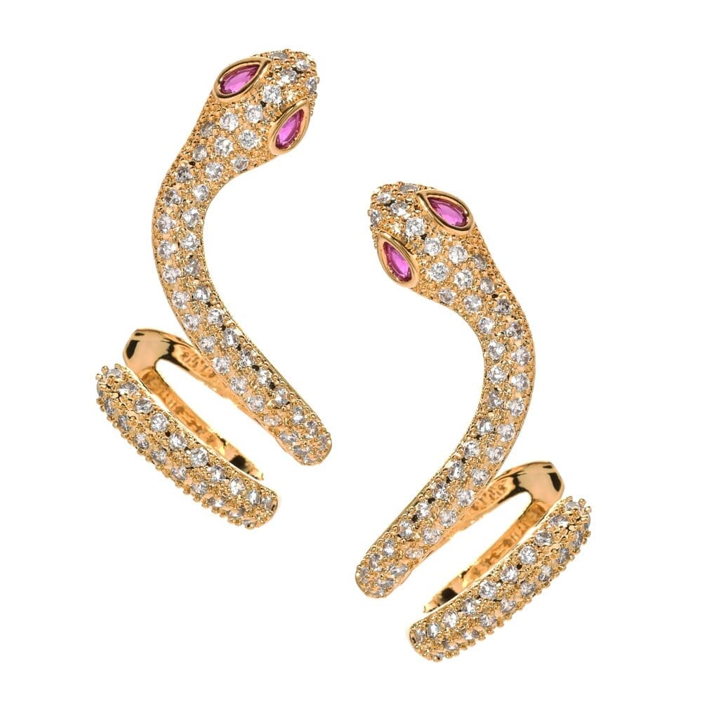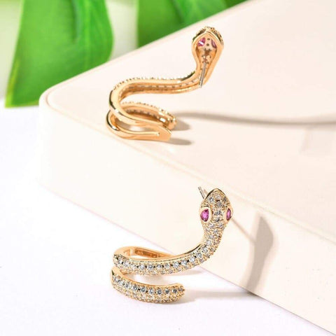 Elegant and inspiring in design, these golden snake earrings for women are perfect for completing your look. Made from stainless steel, this model with white crystals and green stones is specially designed to highlight the features of your face. By wearing them, you get the chance to stand out and look even more seductive. This pair of golden snake earrings will become a source of beauty, not to mention a magnificent expression of your passion and deep conviction.