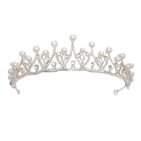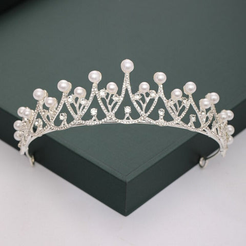Silver metallic crown with mother-of-pearl beads and rhinestones. Wear it at your best parties. This head accessory is also suitable for weddings and baptisms.