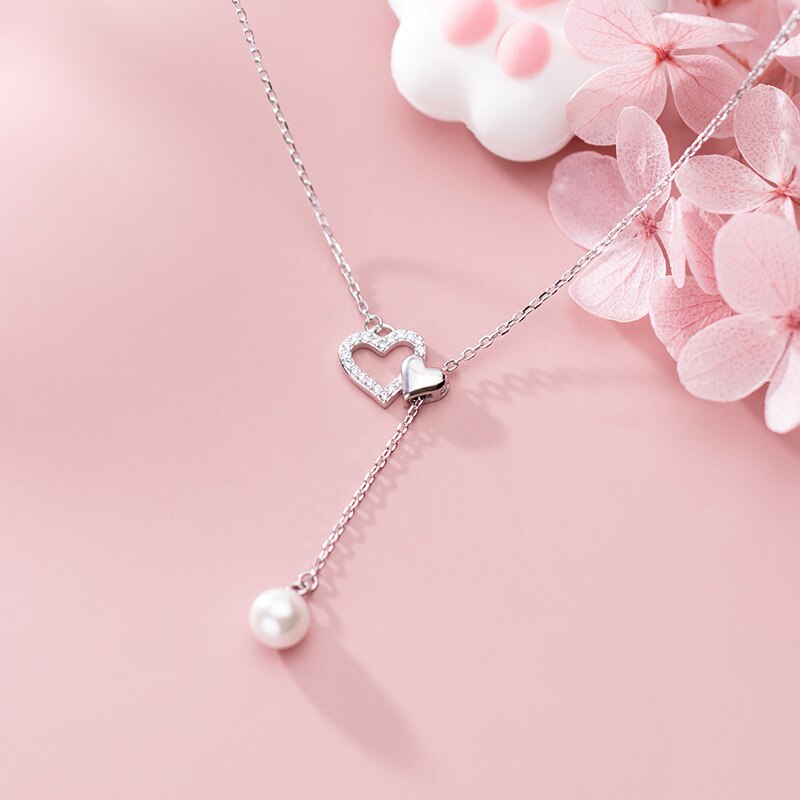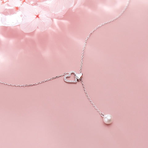 Show your love for her by giving this pearl and heart necklace. The heart is a symbol of love, and this necklace adds a touch of elegance.