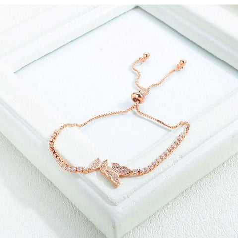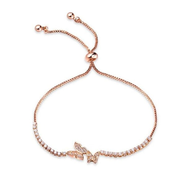 This butterfly bracelet features a Venetian mesh adorned with sparkling cubic zirconia crystals on both sides. These surround a pendant with two butterflies, also decorated with crystals.