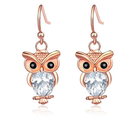 Small but robust - that's what these owl earrings, made of rose gold and zirconium are all about.