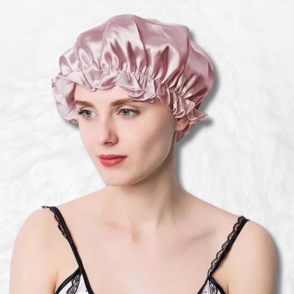This pink silk sleep cap is a wonderful solution for keeping your hair flawless overnight. This cap is not only stylish, but it has also been specially designed for women who care about the health of their hair. Silk is known for its exceptional properties that reduce friction and preserve the hair's natural moisture.