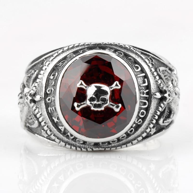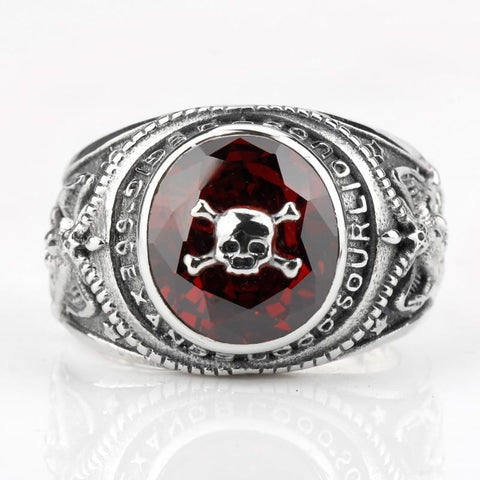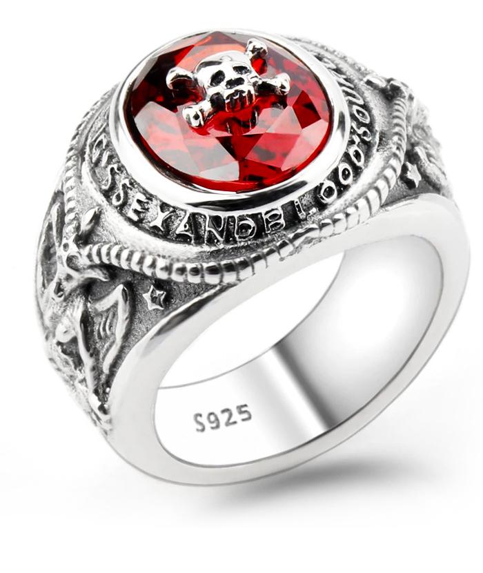 This silver pirate skull ring is absolutely stunning. With its blood-red colour and engraved pirate symbol, this piece of jewellery is a true statement!