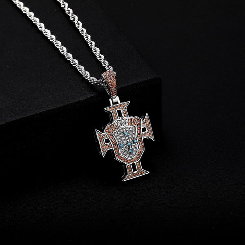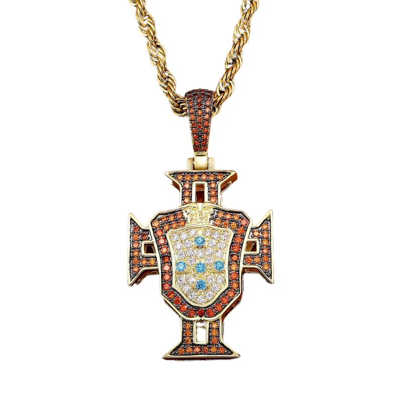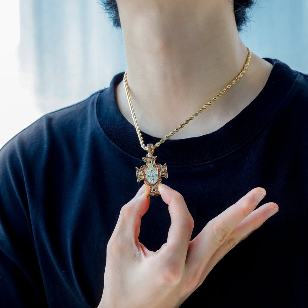 This Portuguese cross necklace pays tribute to both Jesus and the country of your heart or blood. It's perfect for football fans and devotees of Jesus Christ.