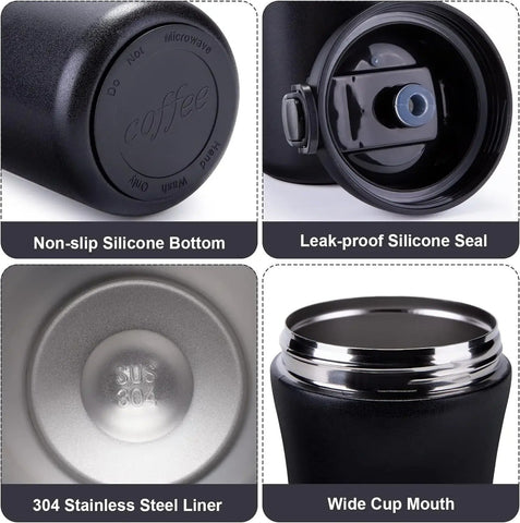 This practical 300 ml travel mug is the perfect choice for daily use, workdays and travel. Its discreet and compact design allows it to easily fit in your bag and slot perfectly into your car's cup holder. This thermal cup keeps hot drinks warm for up to 8 hours and cold drinks cool for up to 12 hours, so you can enjoy your favourite drink at the ideal temperature all day long.