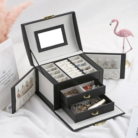 If you love jewellery, then you definitely need this Private Jewellery Holder to keep it organised. It offers numerous benefits, starting with ample space for your accessories: removable drawers for cosmetics and watches, hooks for necklaces and jewellery, compartments to neatly store your hair clips, and dedicated slots to keep your rings safe and tidy. The box locks with a key and features a convenient carrying handle.