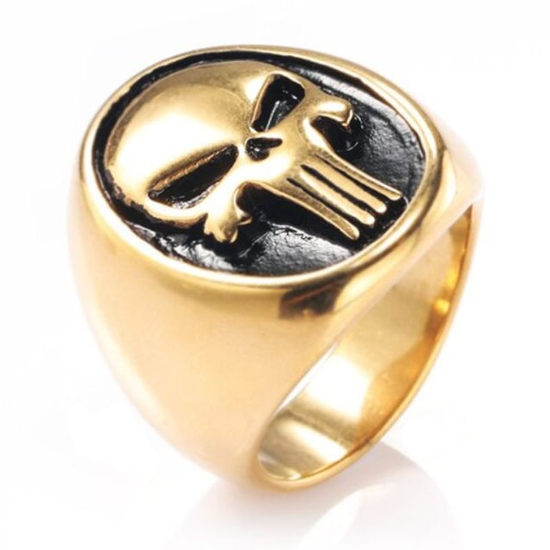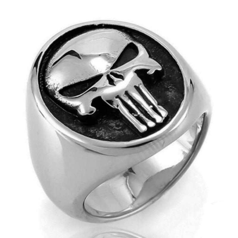 The Punisher symbol is engraved in the center of this signet ring. The Punisher became known through the television series of the same name, which tells the story of a vigilante who hunts down criminals. This signet ring is available in 3 variants.