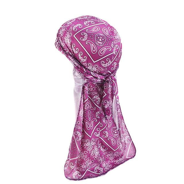 Purple Durag with a pattern that adds colour and originality to your look. This durag is very comfortable to wear and easy to tie.