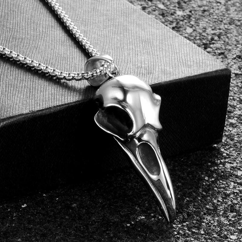 Dazzling Raven Skull Pendant in 316L stainless steel, perfect for all lovers of gothic, rock, and punk fashion.