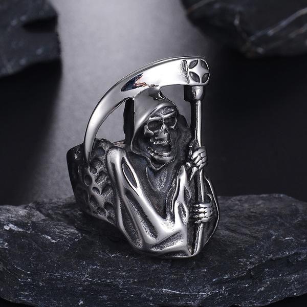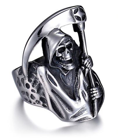 Bravely confront death with this ring featuring the image of the Reaper! "Deep down, no one truly believes in their own death, and in the subconscious, everyone is convinced of their immortality."