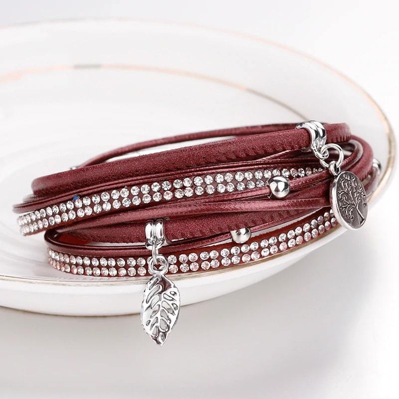 Enhance your look for any occasion with this stunning Red Leather Tree of Life Bracelet. Crafted from polyurethane leather and stainless steel, this bracelet guarantees resilience and longevity. This magnificent accessory features pendants of leaves and the Tree of Life, exuding strength and courage, protecting its wearer from everyday uncertainties.