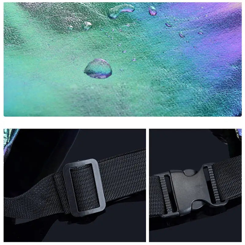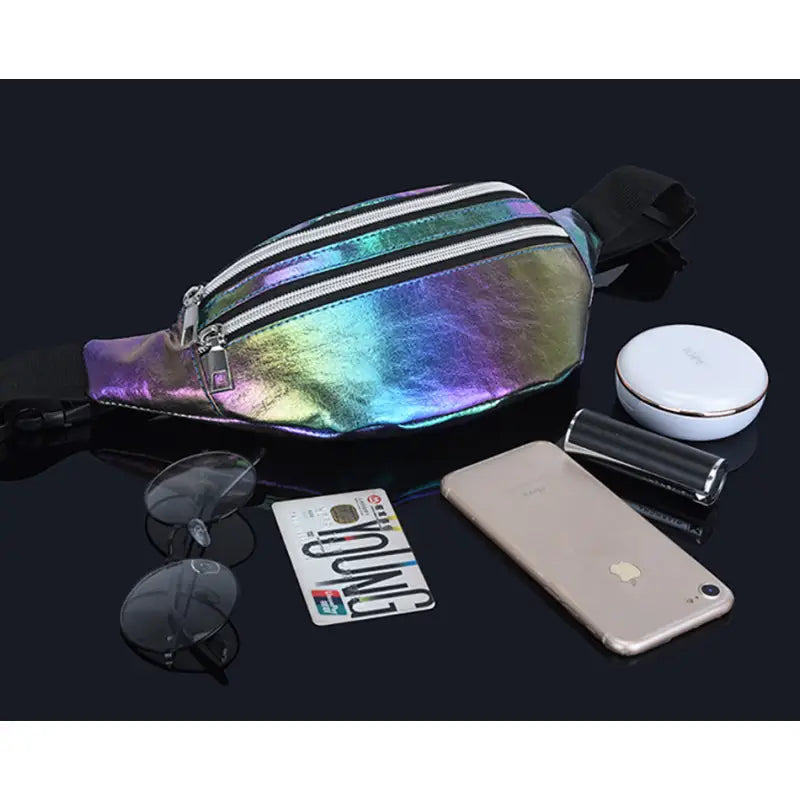 This reflective waist bag is the indispensable accessory for any party! With its bold design and practical shape, you can carry all your essentials in style. Whether you're heading to a festival, a party, or a night out in the city, this bag goes everywhere with you and gives you an original, summer look.