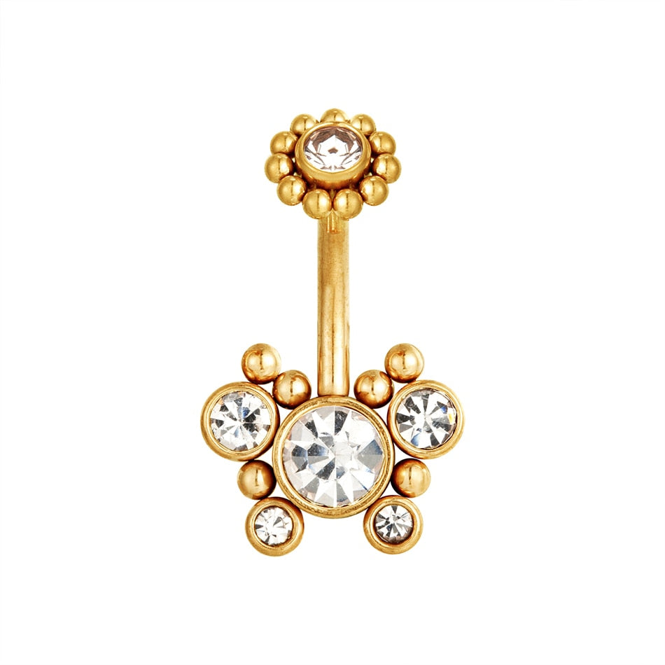 Add a touch of sophistication to your look with this feminine and sensual belly button piercing. Perfect for any occasion, this delicate piece of jewellery adds a subtle elegance to your style.