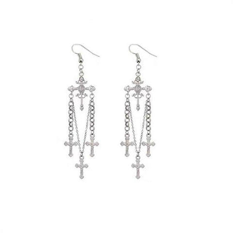 These cross pendant earrings are elegant, slender, of striking purity, and extremely charming. They will beautify your ears while conveying the protection and love of Jesus Christ.