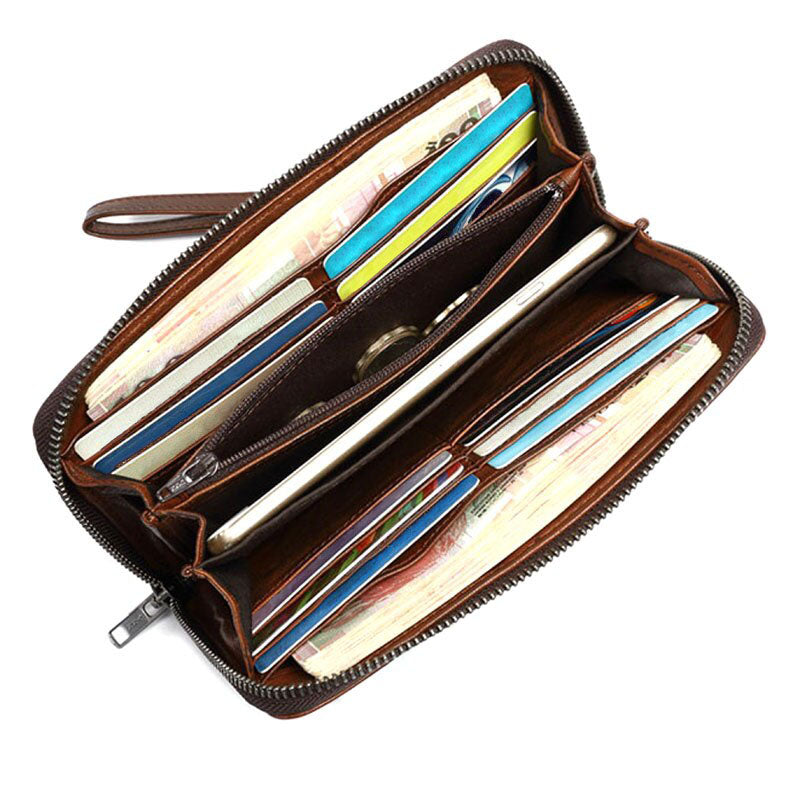 Retro style wallet with ample space for cards and notes! You can store bank cards, notes, keys, receipts, and even your mobile phone in the same place. Thanks to the wrist strap, you can easily carry it like a small bag.