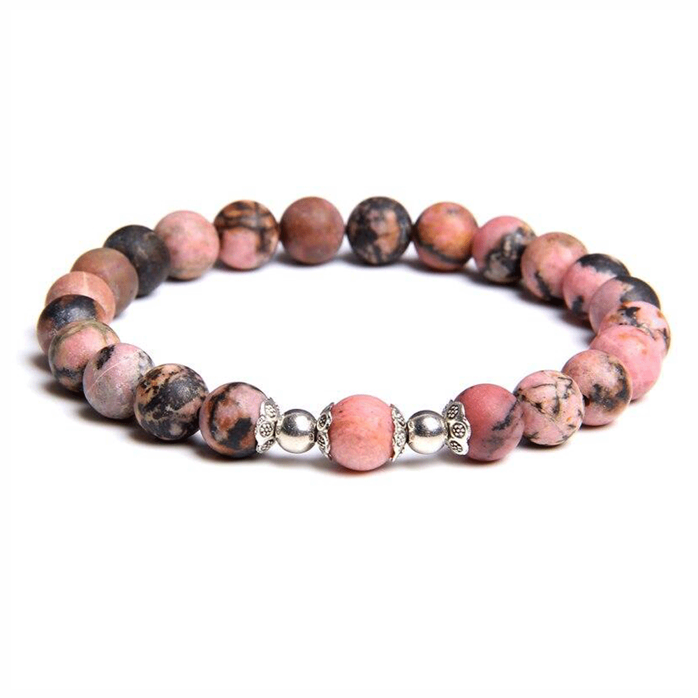 This dazzling rhodonite bracelet brings you emotional balance. Rhodonite is the stone of compassion, an emotional balancer that heals emotional wounds and scars from the past and nurtures love.