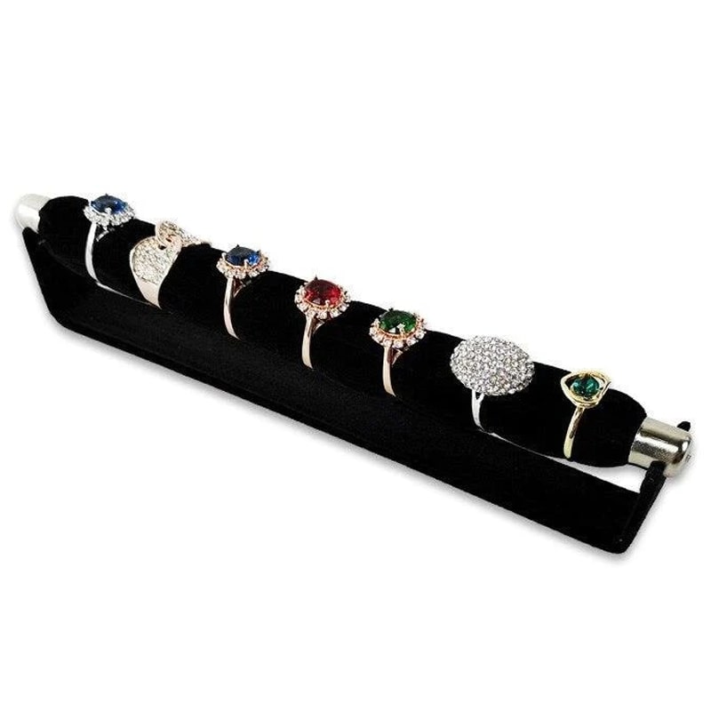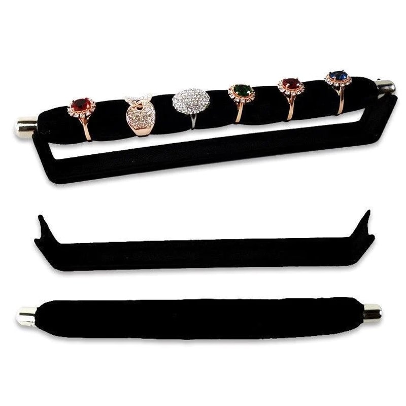 This black ring holder is coated with a beautiful black velvet, providing an elegant and practical storage solution for your rings! Perfect for travel.