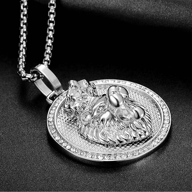 The impressive roaring lion pendant conveys superiority! We love the shine of this jewel. Diamond, lion head, crown - everything is present for a dantesque style.