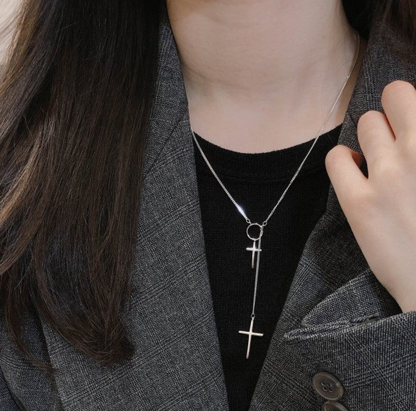 The cross and tie necklace is the perfect piece of jewellery for a simple style.
