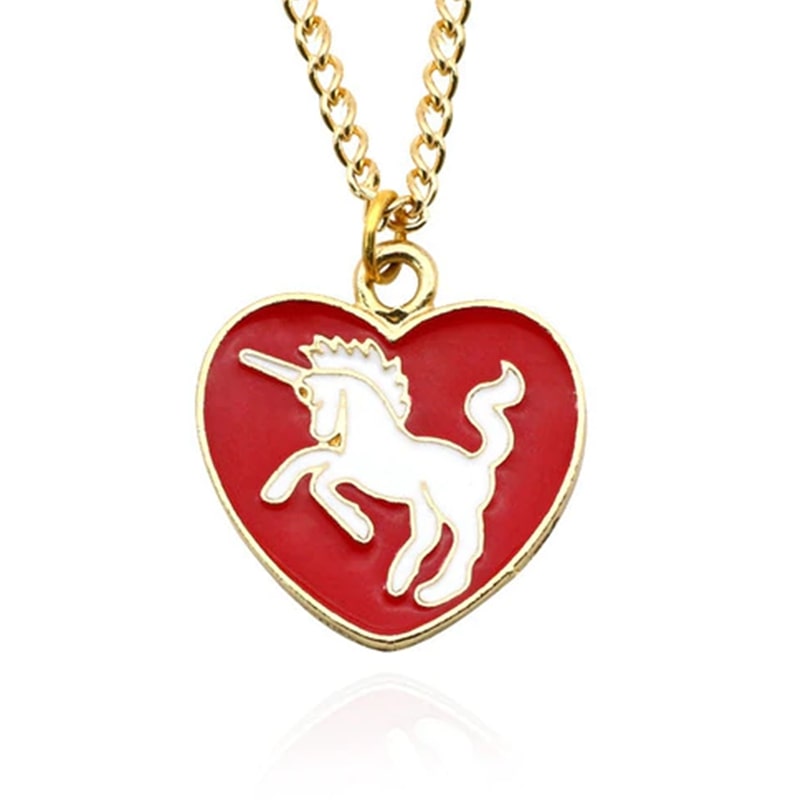 Beautiful Romantic Unicorn Heart-Shaped Necklace.