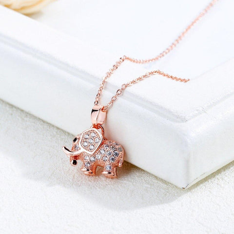 Introducing the rose gold elephant necklace, exquisitely decorated with sparkling crystals. Although elephants are often guided in groups, they can walk alone for hours or days in search of food.