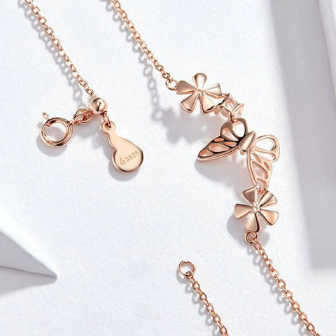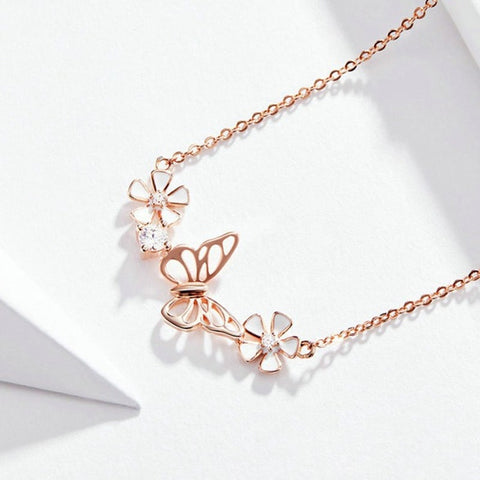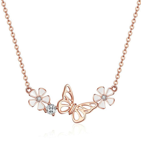 Beautiful Rose Gold Flower Necklace with Butterfly!