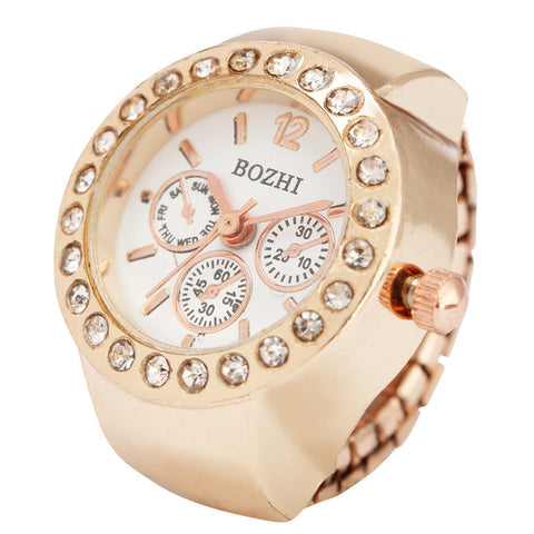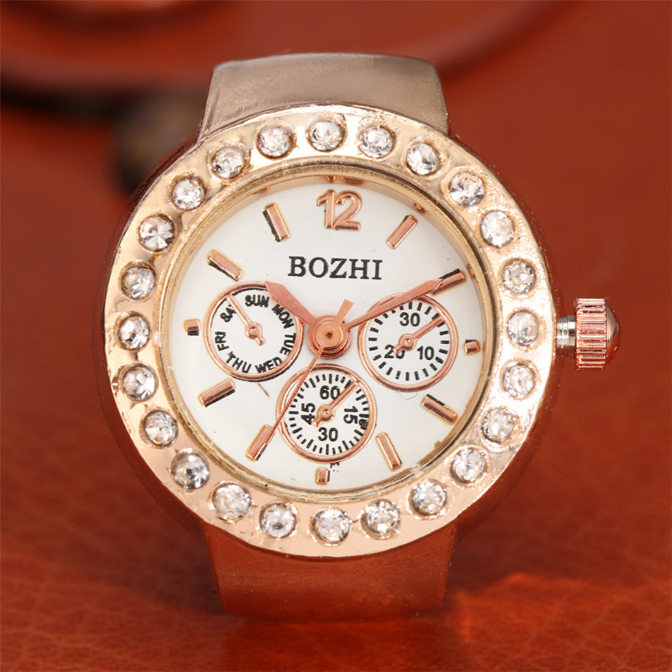 This luxurious, sophisticated, and elegant rose gold ring-watch features a quartz mechanism and is perfect to compliment an evening look, such as a dress.