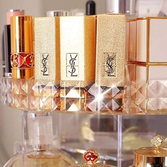 This acrylic organiser rotates 360 degrees so cosmetics are always within reach. It's easy to assemble and clean, and features various compartments and shelves for storing products and accessories.