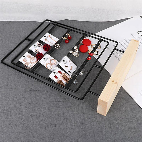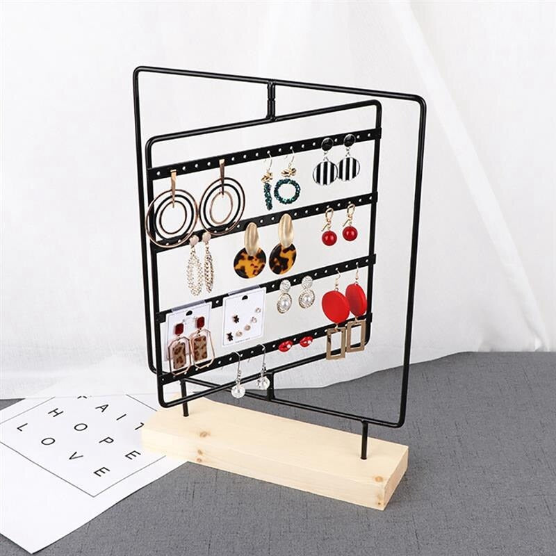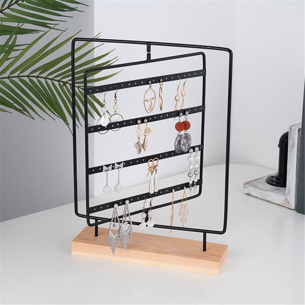 Easy-to-use earring holder, with rotating structure and natural wood design.