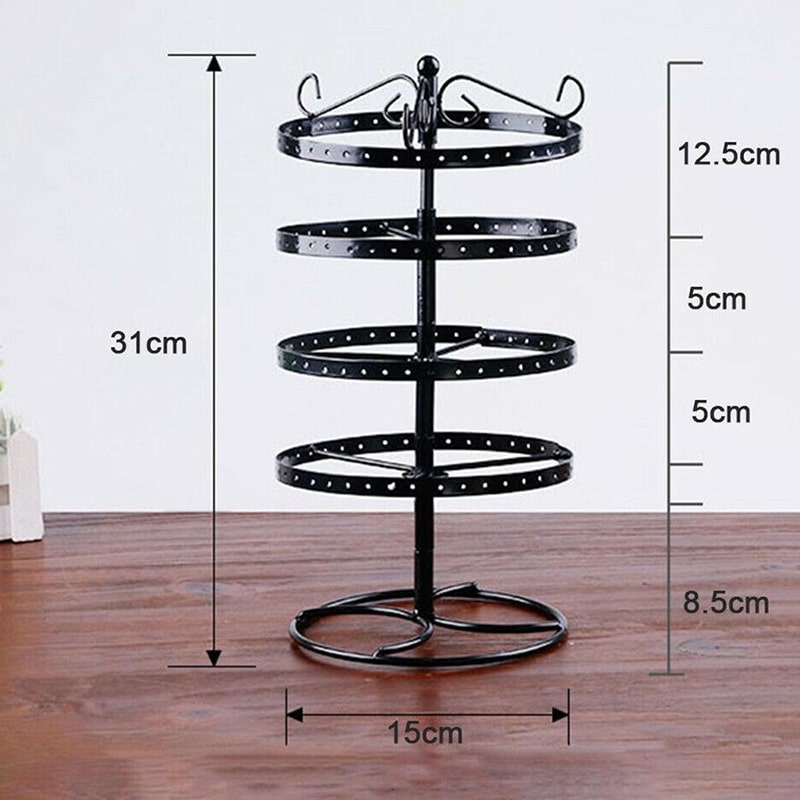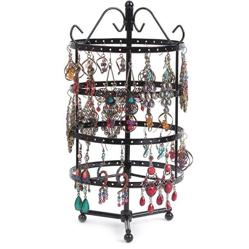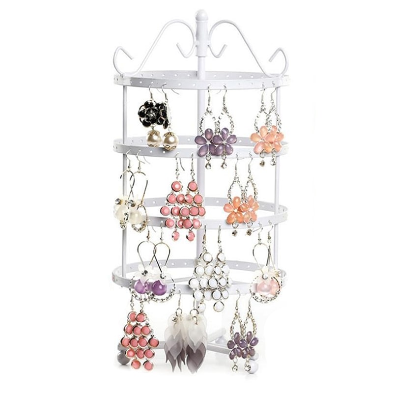 This round, rotating earring stand allows you to organise and display your beautiful earring collection. Store up to 72 pairs of earrings! With this rotating jewellery holder, you can expand your collection. Thanks to the three metal legs, the carousel is extremely stable.