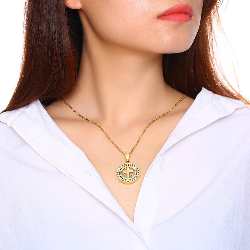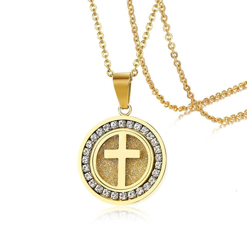 Adorn your neck with elegance and faith with this round cross necklace.