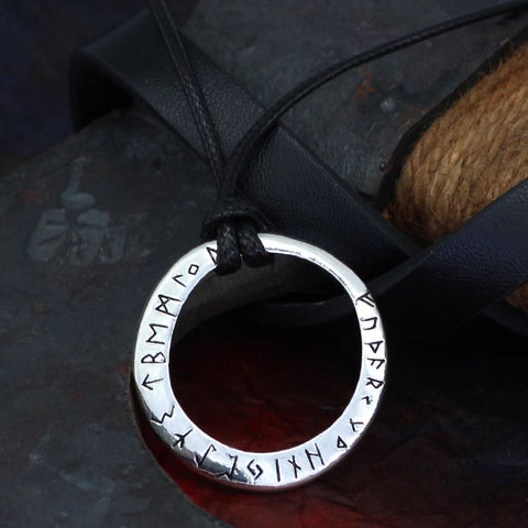 This unique pendant, with an authentic appearance, is perfect for anyone wishing to wear a necklace inspired by Viking jewellery of times past. The necklace features a ring decorated with runes from the ancient Norwegian alphabet.