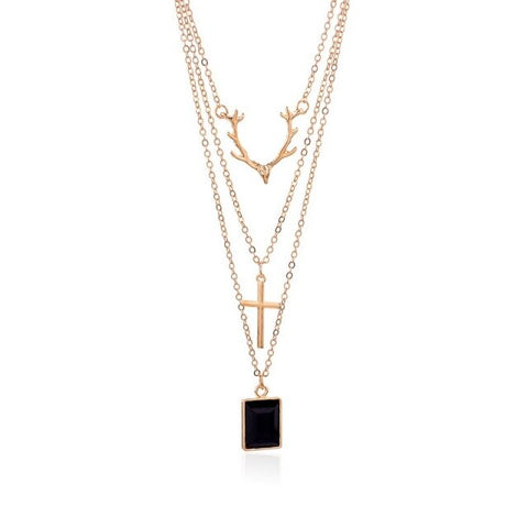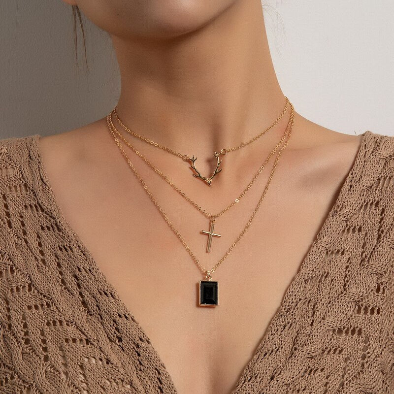 This necklace represents the appearance of Christ with stag horns to Saint Hubert.