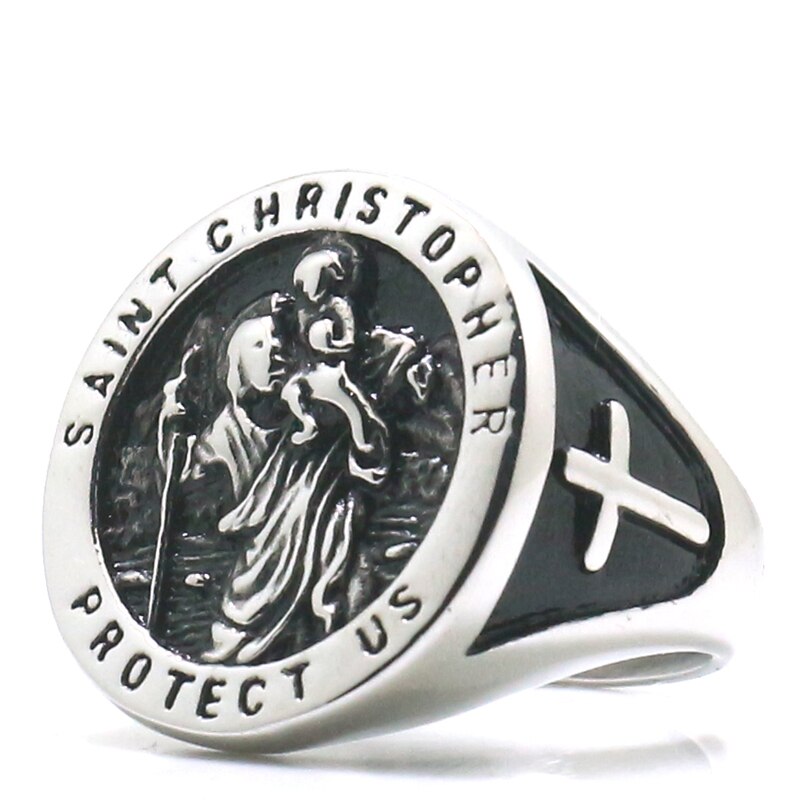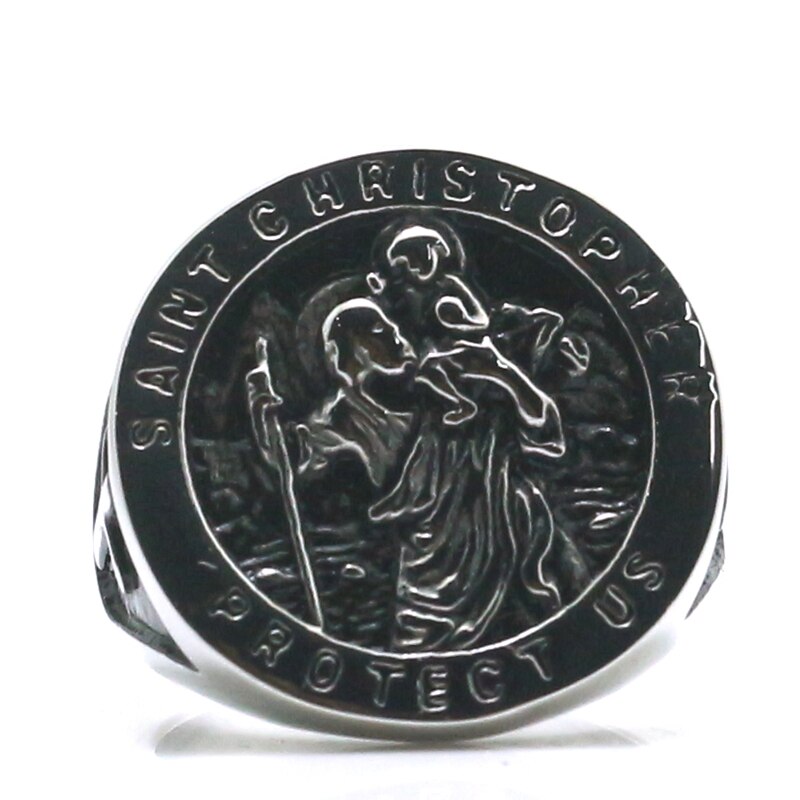 Enjoy the grace and protection of Saint Christopher with this high-quality religious ring dedicated to Saint Christopher.