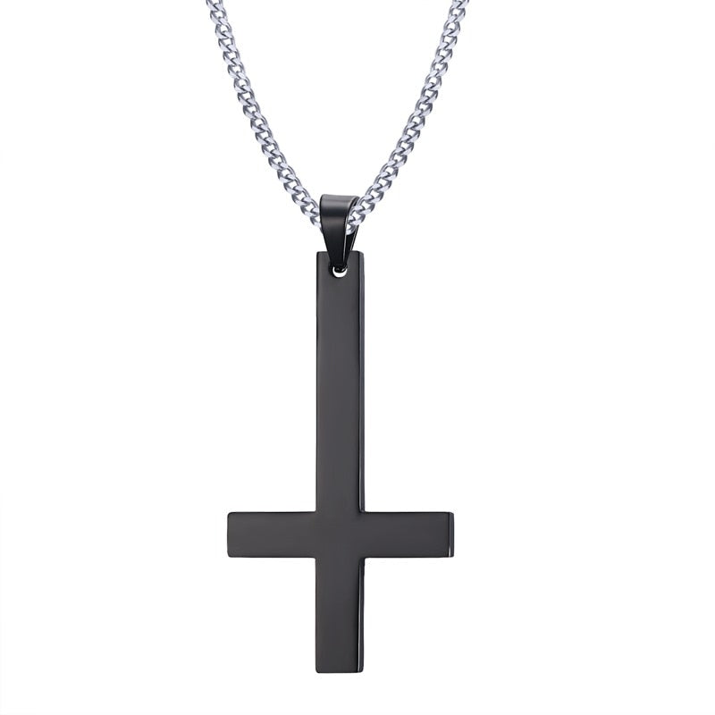 This necklace features a pendant shaped like the cross of St. Peter. This renowned apostle was the founder of the Catholic Church. The cross is inverted because, at the time of his execution, Peter asked to be crucified upside down, as he did not consider himself worthy of dying like Christ.