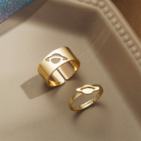 Take your friendship to the Milky Way with this set of two friendship rings, featuring an incredible design of the planet Saturn. The designs intertwine and complement each other perfectly.