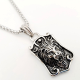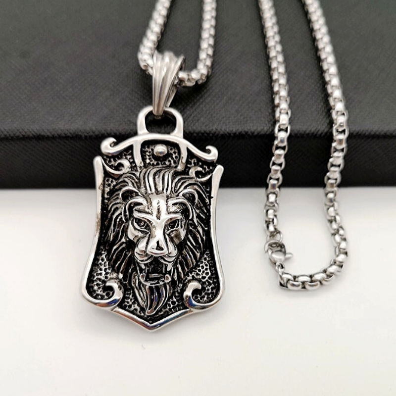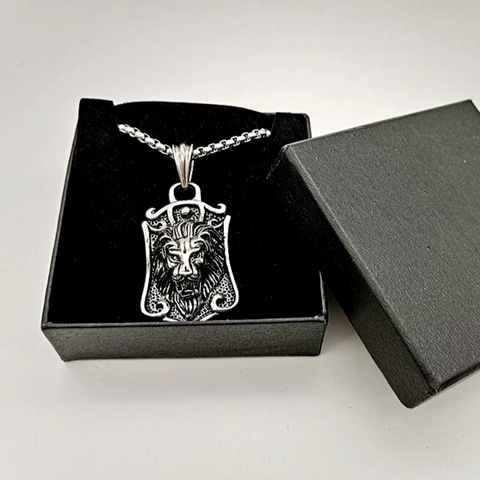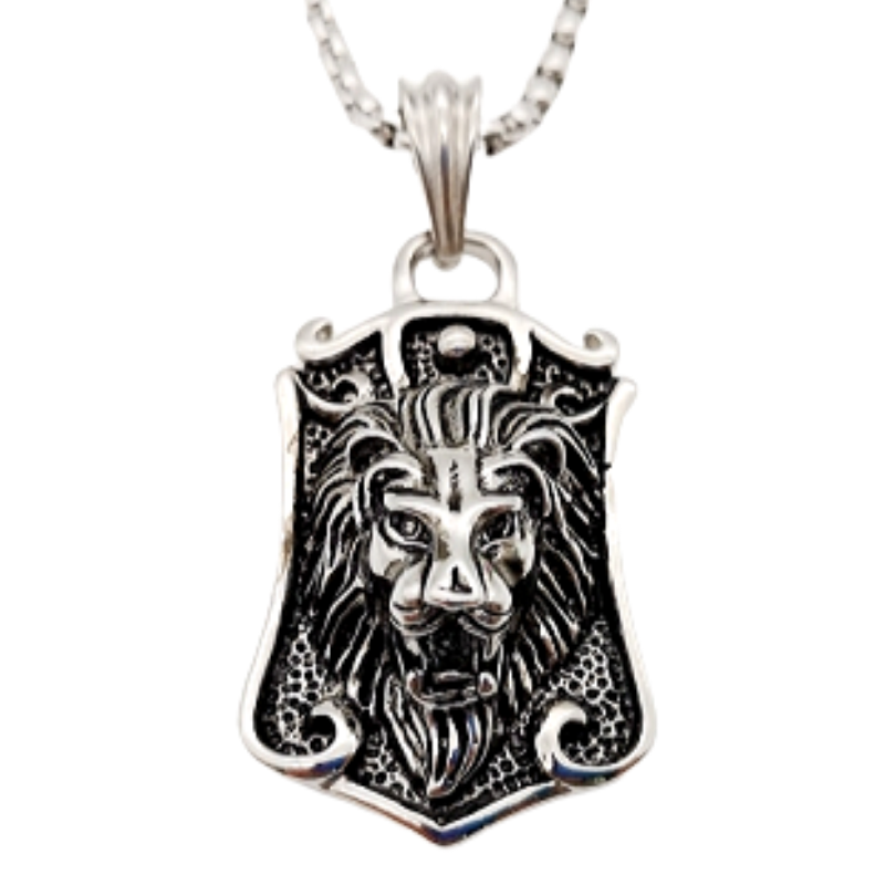 Impressive self-taught lion pendant in silver-plated steel. A unique style for the man who wears it. The lion's head and mane coated in the center perfectly complete the look around the neck.